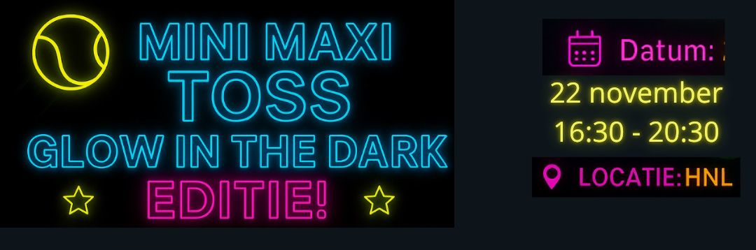 Schrijf je snel in voor de Mini Maxi Toss Glow in the dark editie!